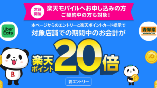 お得キャンペーン【楽天モバイル限定】吉野家・日高屋など対象店で楽天ポイント20倍 楽天モバイルご利用の方が、対象店舗でお会計の際に楽天ポイントカードを提示すると、楽天ポイントを通常の20倍もらえるキャンペーンが実施中です 特典 ■キャンペーン対象の店舗にて、楽天ポイントカードを提示したお会計に対し、楽天ポイントを通常の2...2026.01.11お得キャンペーンポイント