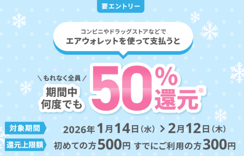 ■エアウォレットにて支払い金額の50%還元