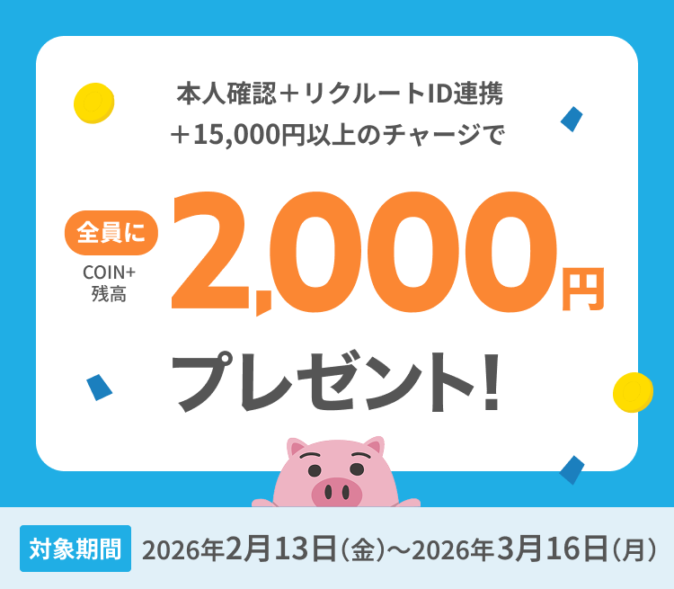 ①リクルートID連携本人確認 &15,000円以上のチャージで2000円