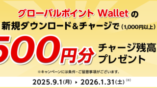 お得キャンペーン三菱UFJカードのグローバルポイントWalletアプリ登録で500円 三菱UFJカード利用者のマストアイテム『グローバルポイントWallet』の新規ダウンロード&チャージすると、500円分のチャージ残高がもらえるキャンペーンが実施中です。 キャンペーン詳細の前にグローバルポイントが聴き慣れない方もいるかもしれ...2026.01.21お得キャンペーン