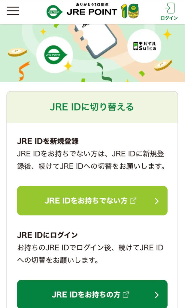 JRE POINTアプリを開いたら『JRE IDを持っていない人は一旦JRE POINTアプリにログインして』と書いてあったので指示に従いログイン