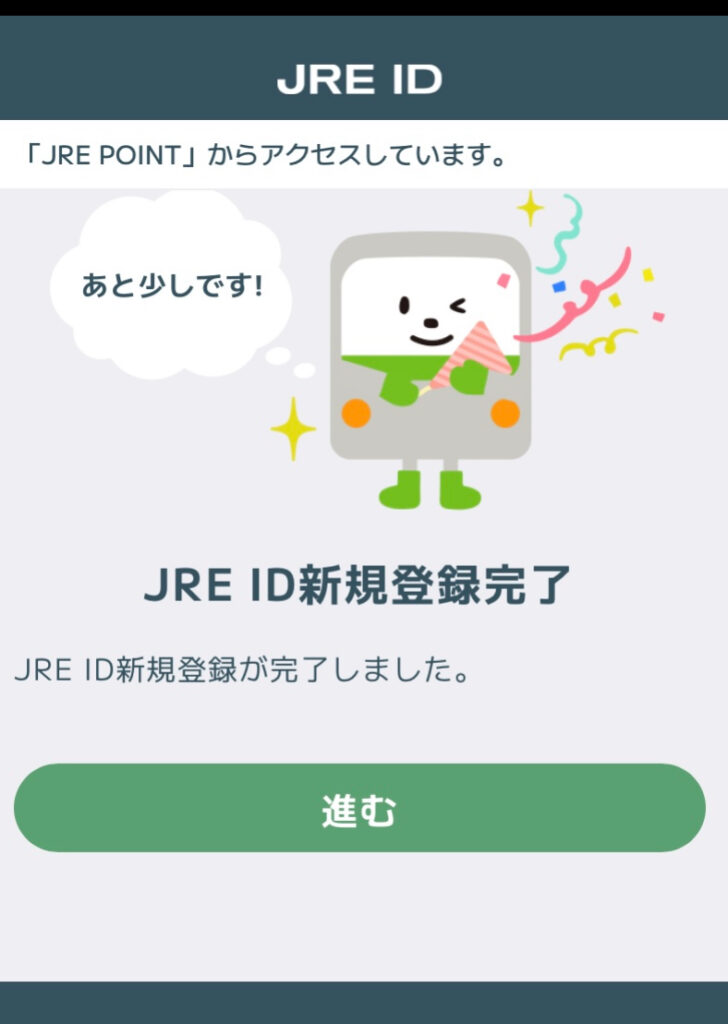 JRE IDの新規登録完了。