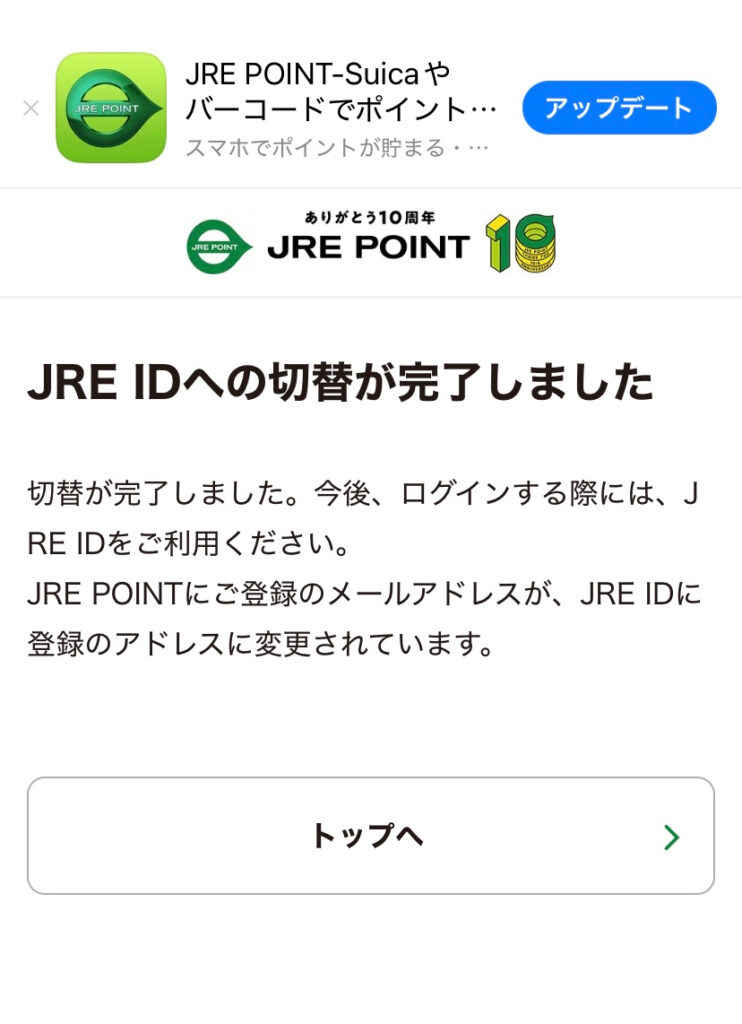 そのまま画面案内の通り進めたらJRE POINTのID切り替えも完了