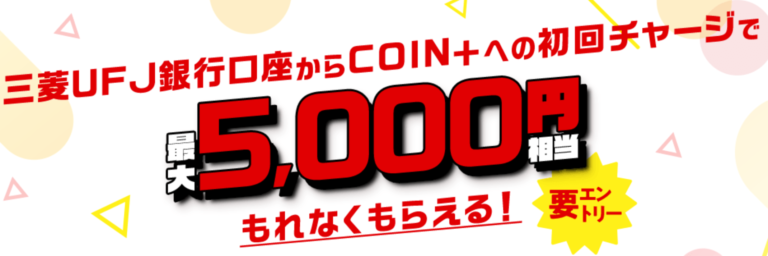 エアウォレットを使って三菱UFJ銀行口座からCOIN+への初回チャージで最大5,000円相当もらえるキャンペーンが実施中です!