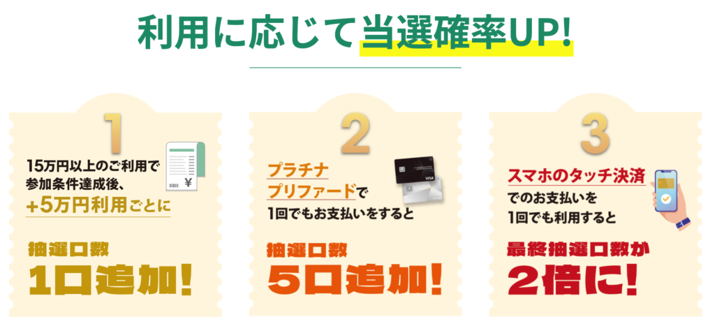 なお、スマホのタッチ決済での支払いを1回でも利用すると最終抽選口数が2倍になります。