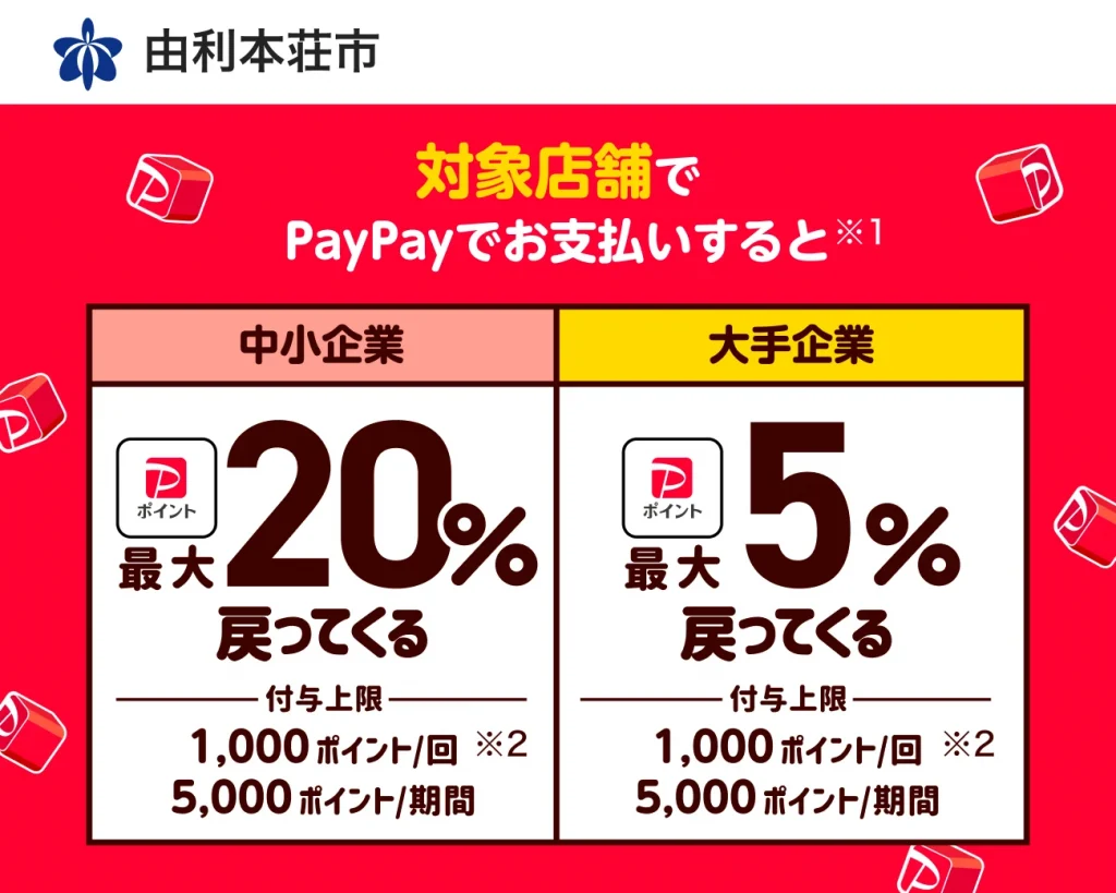 由利本荘市では、PayPay以外に『d払い』と『au PAY』も同時開催されています。