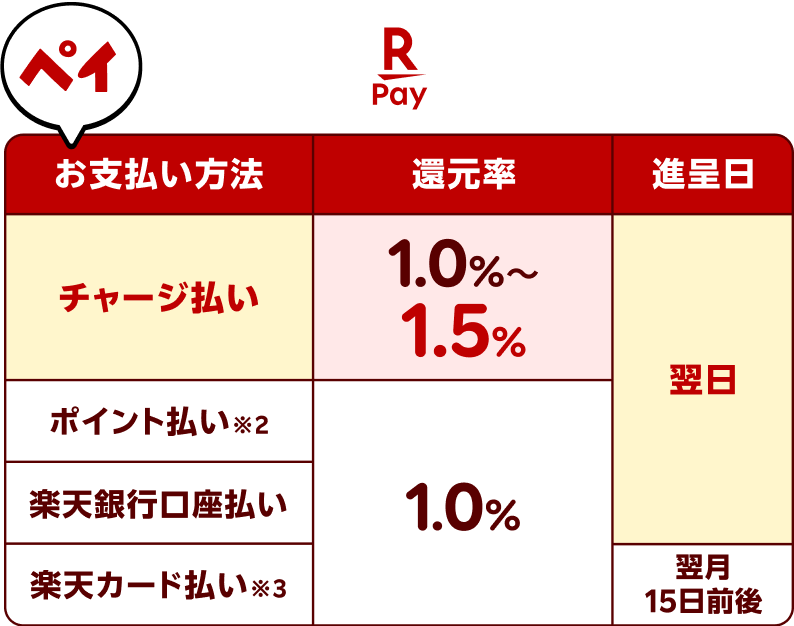 ※楽天ペイアプリ内の楽天Edyへのチャージ分および楽天Edyによるお支払いは対象外
