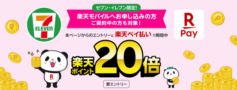 セブンイレブンで楽天ペイ支払いをすると楽天ポイントが通常の20倍になるキャンペーンを実施中です