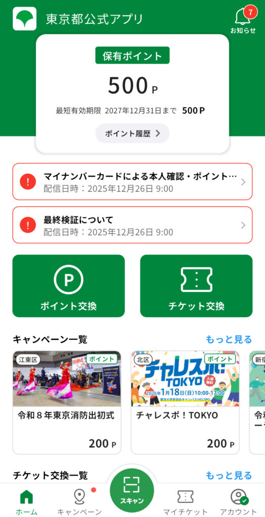 色々な活動をするとポイントが貯まり、その貯めたポイントを都内施設のチケットと交換したり、実生活に身近なポイント(dポイント・Vポイント・楽天キャッシュ)と交換が出来るらしいです。